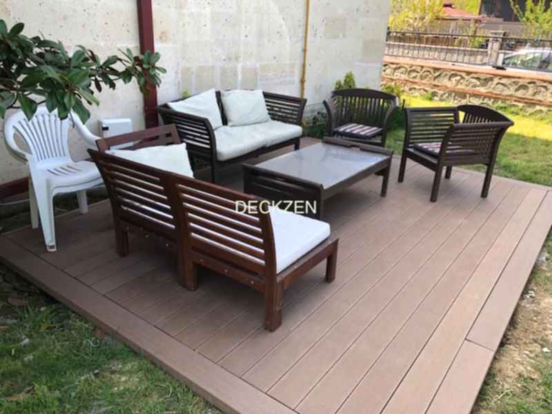 Ahşap Görünümlü Kompozit Deck Kaplamalar iki yüzeyi farklı desene sahip, kaymaz ve antibakteriyel özelliğe sahiptirler.